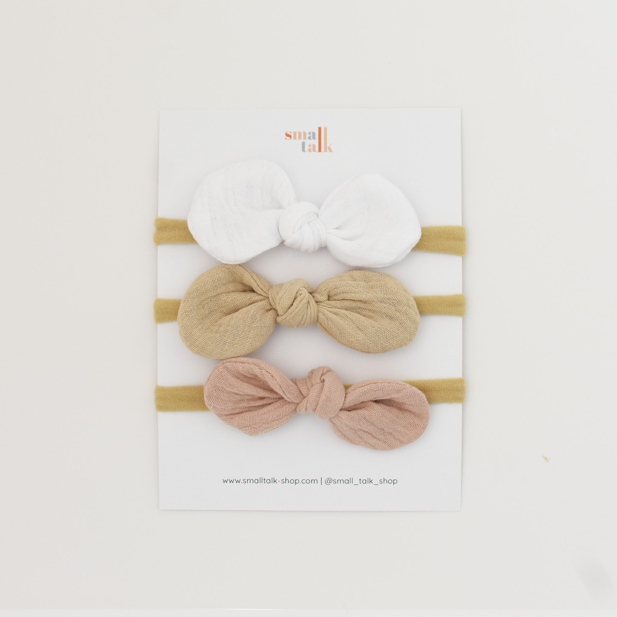 מארז שלישיית פפיונים לבן, ורוד מעושן וחול | סיכות או סרטים