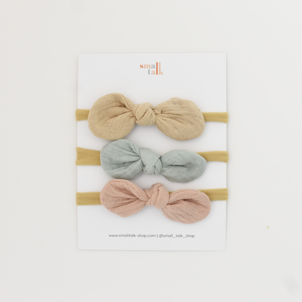 מארז שלישיית פפיונים חול, ורוד מעושן וכחול | סיכות או סרטים